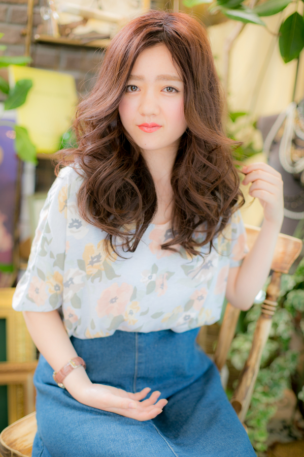 前上がりのレングスにレイヤーを入れてカット。顔周りはリバースのパーマで、全体的にはフォワードメインでカールを入れることで、大人っぽく。少し背伸びをしたい年頃の方にオススメです!