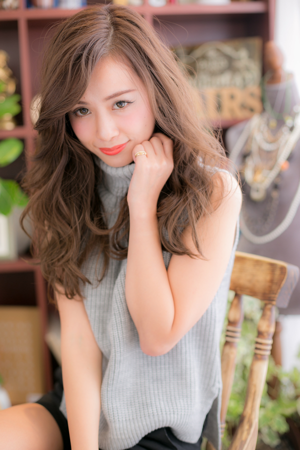 ラフ&ドライな絶妙な質感でイレギュラーな動きが出る、一歩先いく攻め系ロング。表情をチラ見せする斜めバングを合わせれば、誰もが振り向く、フェロモンたっぷり無敵のおフェロスタイルの完成です。髪をルーズに束ねても、こなれ感が出て、ツヤっぽい♪