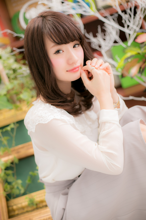 眉ぎりぎりの前髪がポイント★目元を印象付けるだけでなく、トップ~サイドの顔を包み込むことで、可憐な印象にしてくれます♪毛先のカールが柔らかさを出します。