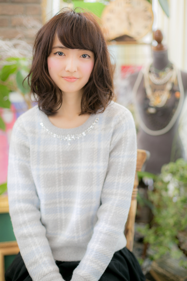 鎖骨下の長さに内巻きメインパーマで方上で揺れる女性らしい印象に。伸ばし中でハネてしまうのが悩みの方にオススメのスタイルです。
