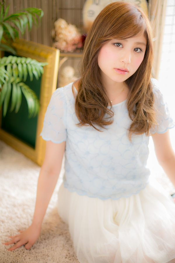 毛先の動きで軽さを演出した,小顔効果もだせるスタイルです。明るめのカラーもアッシュ系の色味で落ち着いた雰囲気に。