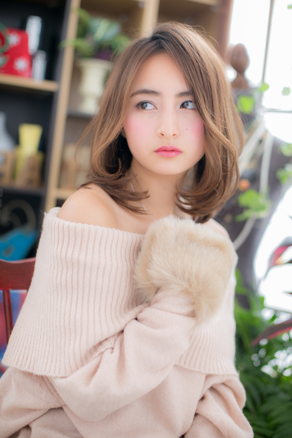 美人顔に見せるワンカールミディにハイトーンカラーをオン。輪郭をカバーして小顔に見せながら、しなやかな曲線で女性らしさもプラスして街の視線集中!