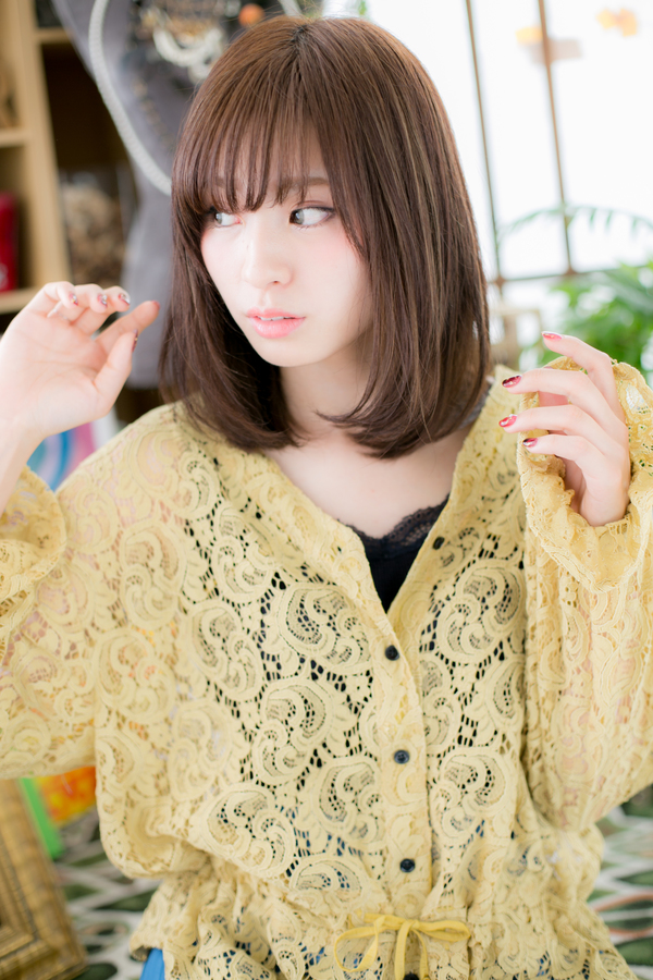 輪郭をカバーして小顔に見せる前下がりのワンカール&目力強調の斜めバングで美人度UP!透明感あるツヤカラーで好感度バッチリ。ミディアムヘアを際立たせるグラデーションで大人女子のコーデを完成!厚めバングやくせ毛風カールのふわミディもガーリーでヘアアレンジ!。(メイク担当:北浦和店 棟方)