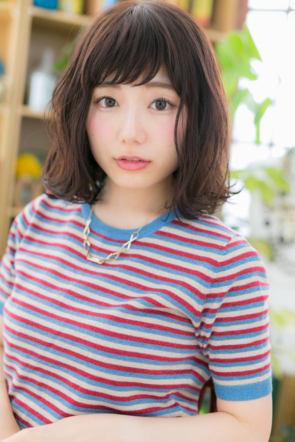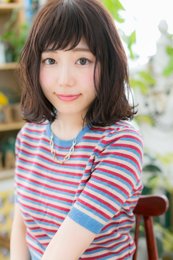 妹系の可愛さが光る愛されふわミディのヘアスタイル。前下がりで小顔見せOK。くせ毛風パーマ×斜めバングは耳かけしても大人かわいい。ミディアムヘアを際立たせるグラデーションで髪の毛の悩みも解決!人気のカラーやアッシュグレー、ブリーチなしもおすすめ!30代・40代にも◎(メイク担当:北浦和店 棟方)