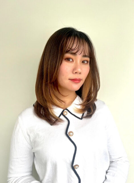 お耳より前の毛に顔周りカットで段をつける事により、透明感をプラス♪