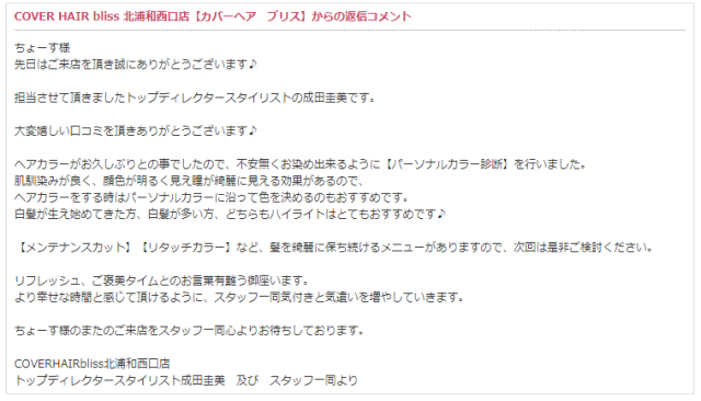 今後ともCOVER HAIR bliss北浦和店をよろしくお願い致します♪