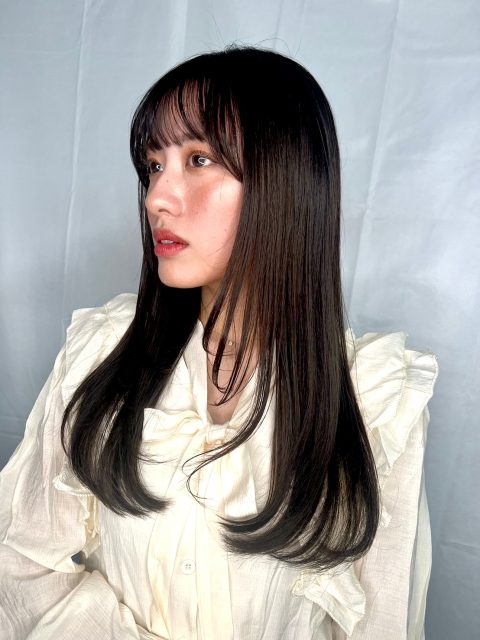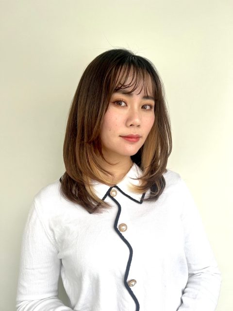 お耳より前の毛に顔周りカットで段をつける事により、透明感をプラス♪