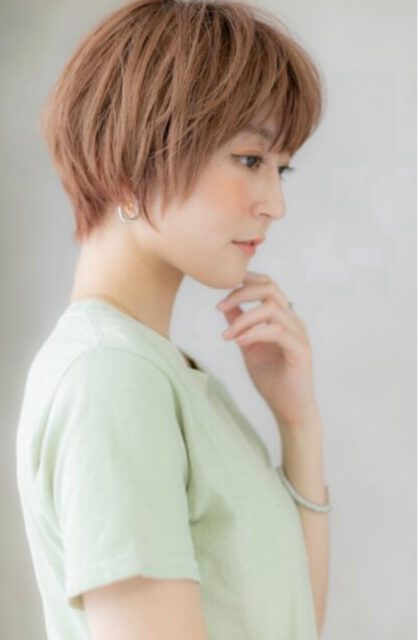 表面に束感を出すようにカットした【エアリーショート】。