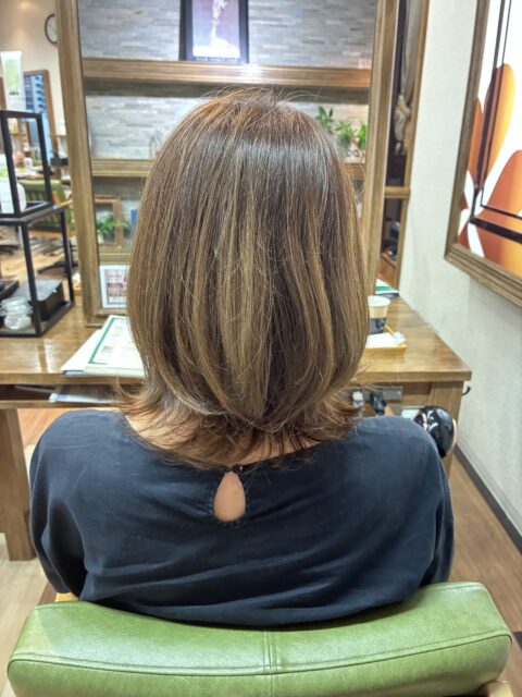 肩に当たる長さのミディアムボブに動きの出るレイヤーを入れました。