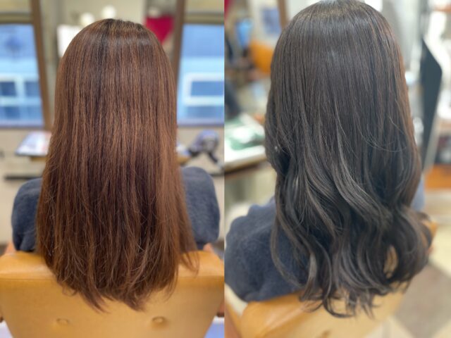 - ダメージレスに、縮毛とカラーを同時施術♪
