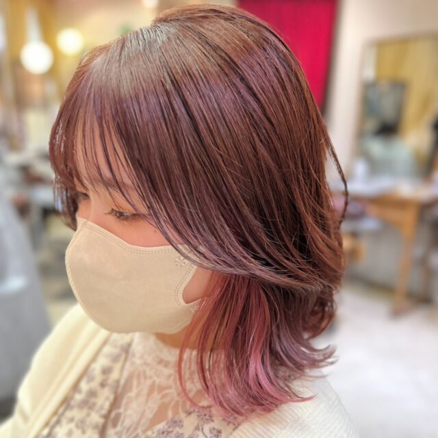 髪の内側にベースの色とは異なる色味を入れるインナーカラー。
