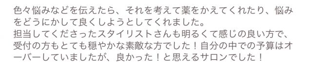 数ある美容室の中、当店を選んで頂き、ご満足頂けてとても嬉しく思います。