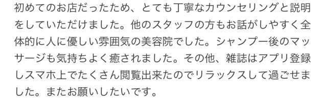 お客様の大切なお髪だからこそ、しっかりカウセリングをさせて頂き、お悩み、ご要望を共有させて頂き、アフターケアーまで見させて頂いていますので、初めての方でも安心してご相談頂けたらと思います。