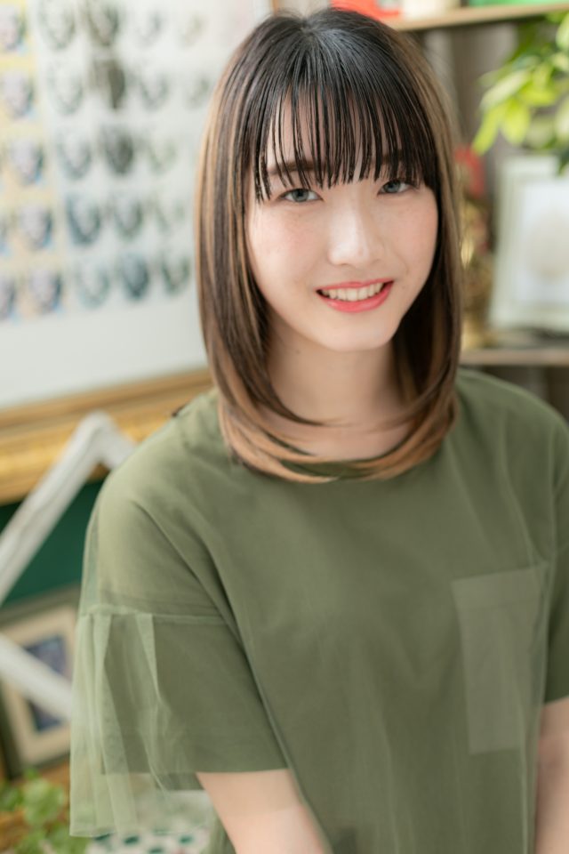 - 手ぐして決まる簡単スタイリング/シースルーバングで透け感を出したり,斜めバングや厚めバングも大人かわいい/くせ毛風ふわミディや耳かけもガーリー/クラシカルモードな黒髪からのイメチェンにGOOD/ヒアルロン酸カラーは白髪にも対応可/20代/30代/40代
