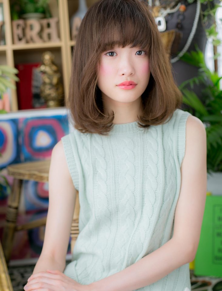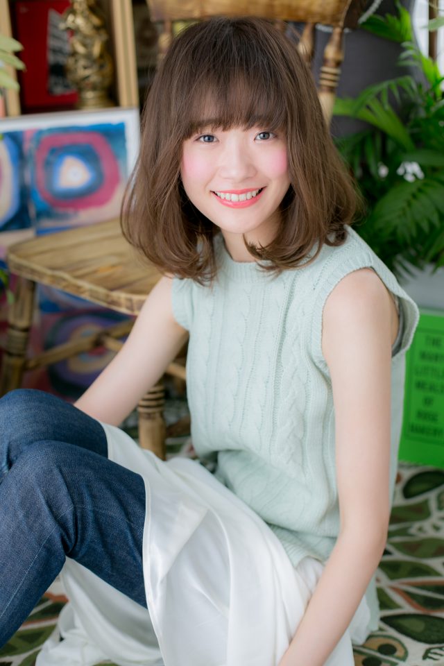 ローレイヤーセミディの毛先に、空気感あるワンカールをオン。浮遊感あるAラインで、重めスタイルに軽さと動きを出します。透け感あるフリンジバングでフェミニンに。耳かけしたり、斜めバングやセンターパートもOK。