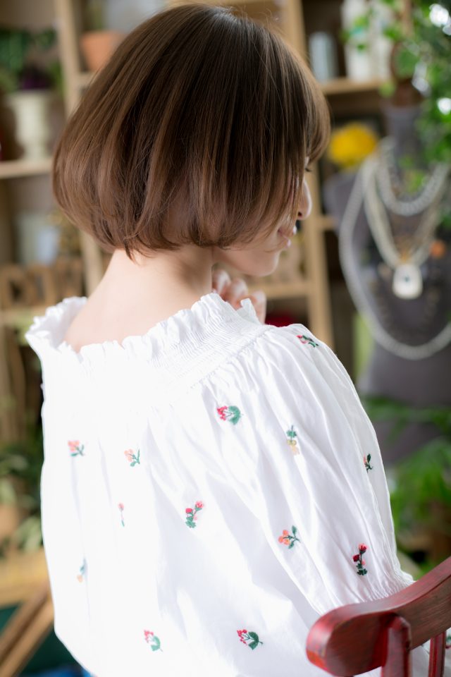 コロンとまとめたコンパクトフォルムで小頭に。スタイルUP効果を狙ったナチュラルボブ。前下がりで輪郭をカバーし小顔に見せます。 目の上ギリギリの斜めバングで目元を強調し目力UP!似合わせカットでとびきり可愛く★
