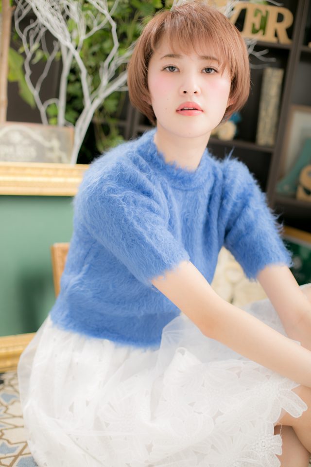 似合わせカットで毛先を軽く調節したカジュアル小顔ショート。前下がりな前髪やアシンメトリー、厚めバング、斜めバングにしたり、うぶバングで眉を出しても大人かわいい☆カラーはグレージュショートがおすすめ♪
