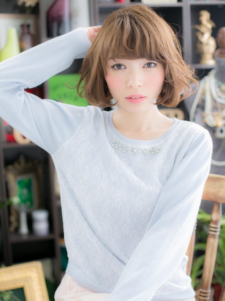 外国人みたいなくせ毛風のアンニュイカールが大人かわいい/フェミニンボブや前下がりボブ,大人ボブやナチュラルボブからのイメチェンにオススメ/リッチカールで結婚式やパーティ風にしてもセクシー&グラマラス/20代/30代/40代