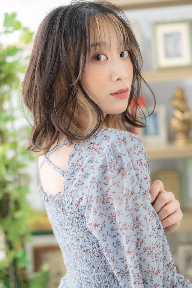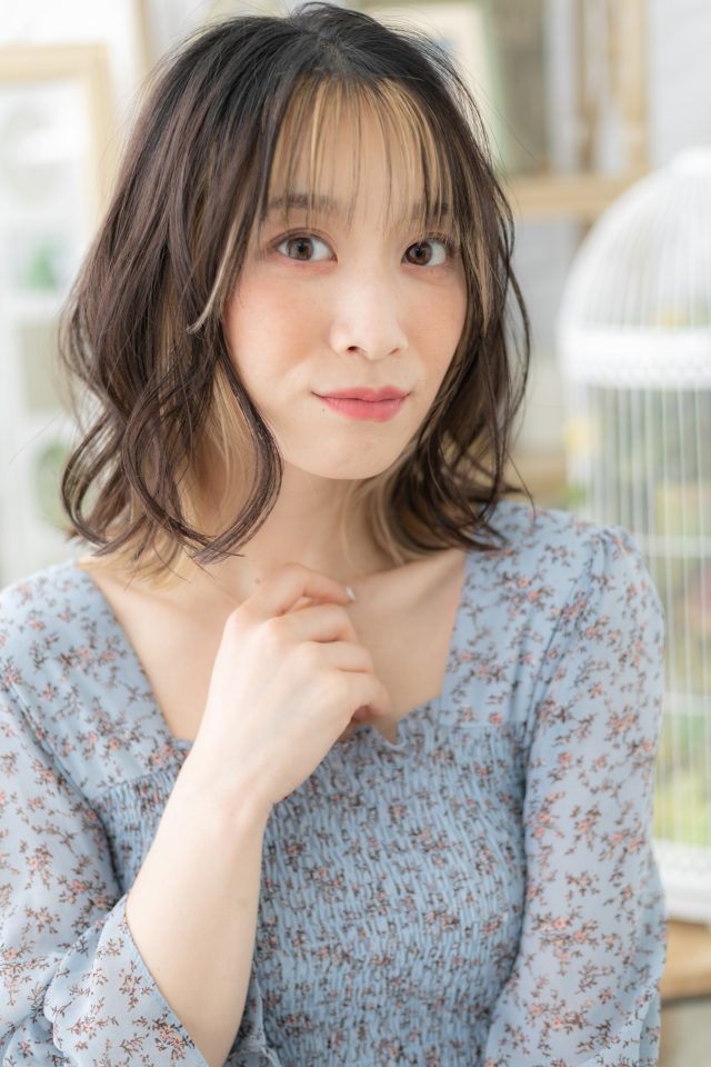 韓国風インナーカラーハイライトロブヘア