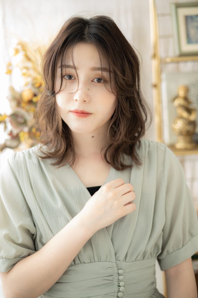 斜めバング厚めバング、シースルーバングかきあげ前髪で小顔。くせ毛風ゆるふわミディや耳かけ前下がりウルフも大人かわいい。切りっぱなしボブミニボブ、マッシュボブナチュラルボブも人気。(メイク担当:川口店岩渕)