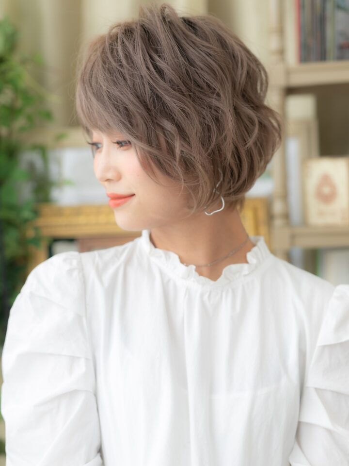 斜めバング厚めバング、シースルーバングで小顔。大人ボブ前下がりボブ、ナチュラルボブフェミニンボブ、マッシュボブも人気。くせ毛風ゆるふわミディや耳かけ前下がりウルフも大人かわいい(メイク担当:川口店伊与田)