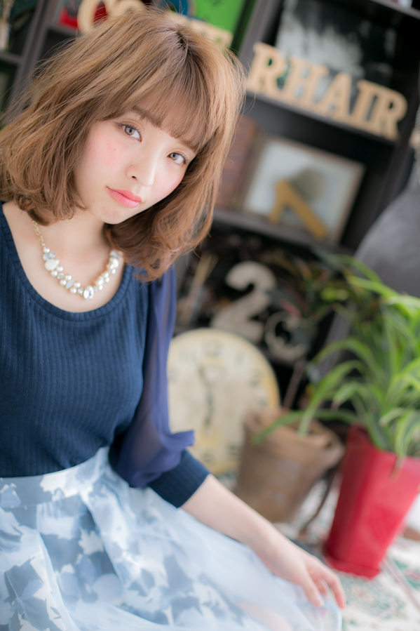 前下がり大人ガーリーくせ毛風小顔グラボブ