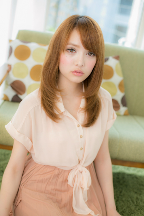明るいハイトーンのカラーに、上品さと可愛さが絶妙なミディアムヘアーでスウィートな女の子らしさを!根元から中間はストレートでツヤ感を出して、毛先には内側にワンカールのナチュラルなスタイル。