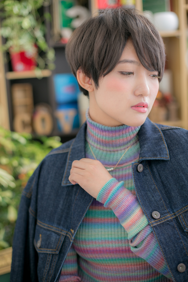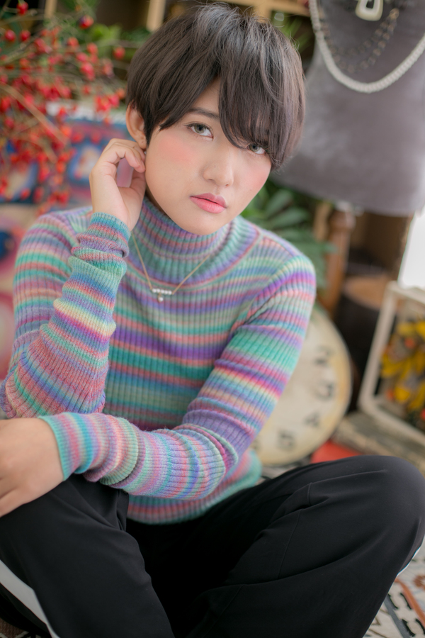 キリッとしたボーイッシュショートで凛とした印象に。目にかかるラフなバングと、なだらかな曲線を描く丸みシルエットでフェミニンな雰囲気も忘れません。直毛の方はパーマをかけると再現しやすく☆