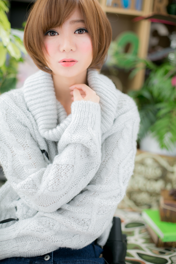 丸いシルエットがかわいいナチュラルボブスタイル。明るめのベージュカラーでカジュアルさもプラスしたエアリーな印象のボブスタイルです。