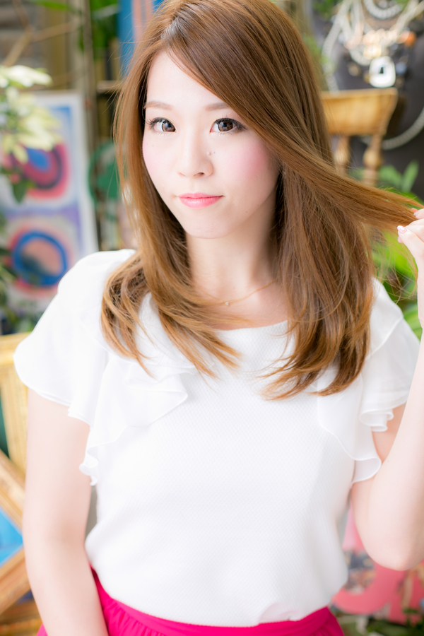 触りたくなるようなツヤ感のあるストレートヘアです。明るめのカラーで、透明感のあるやわらかスタイル。根元からブローして内巻きにするだけの簡単スタイリングで、ツヤ感ある美ストレートに仕上がります。