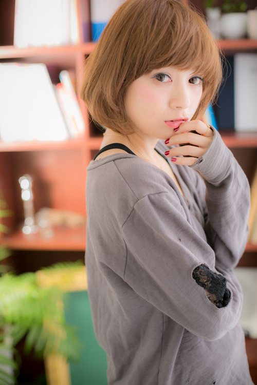 重めシルエットのボブベースにレイヤーを入れて動きを。毛先にエアリーカールをつけて柔らかな表情に☆気になる顔型もカバーしてくれます!厚め&長めの前髪が、大人かわいい印象に。
