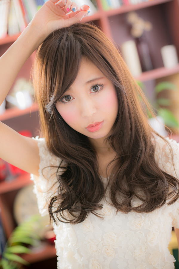 美肌感引き出す透明感あるカラーと,毛先にかかったカールがフェミニンなロングスタイル。斜めバングで小顔効果も★伸ばしかけの方や簡単スタイリングが好きな方にオススメの,大人かわいいスタイル。グラデーションカラーやモード,アシンメトリーなどもご相談ください♪