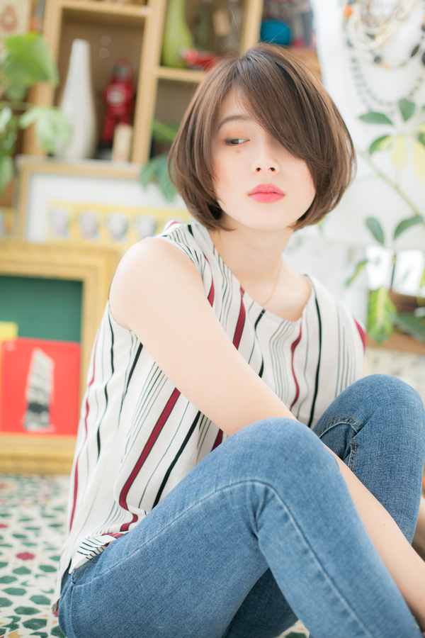 シンプルなナチュラルボブは、うざバングでアンニュイな表情に仕上げでオシャレ度UPの大人ボブに格上げ。ストレートの前下がりで小顔にメイクし大人女子のコーデで完成。ミデアムヘアを際立たせるグラデーションやベージュで髪の毛の悩みも解決!40代のエラ張り対策にも◎