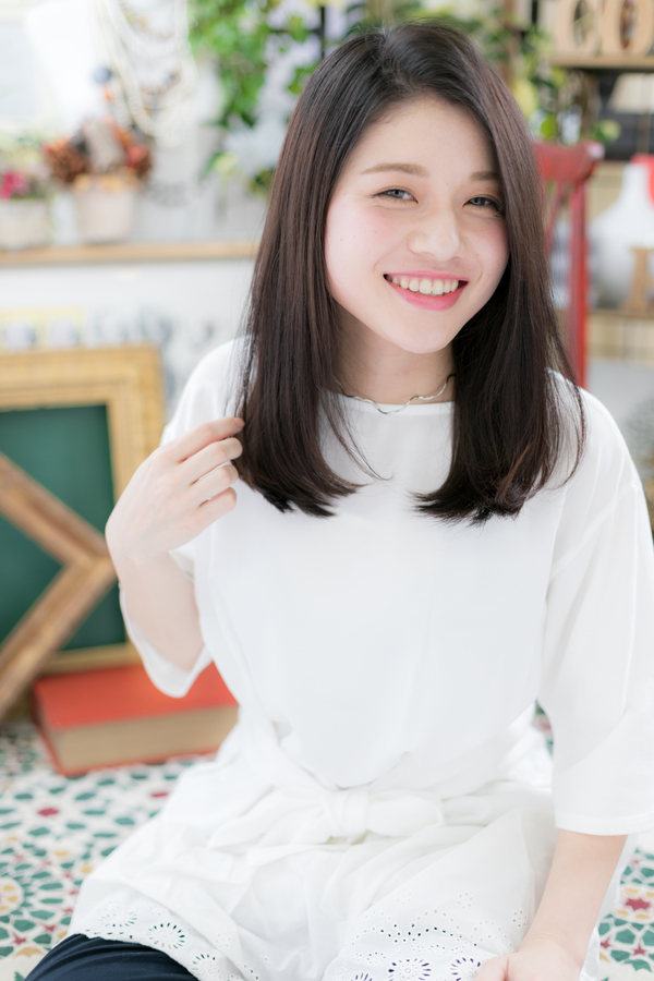 キレイめかきあげバング。ラフさの中にツヤっぽさが漂うヘアスタイルです。くせ毛風カールのふわミディ、斜めバングや厚めバングで目力UPで大人女子のファッション度UP♪髪の毛の悩みも解決する人気のカラーもおすすめです。30代・40代にも◎(メイク担当:北浦和店 棟方)