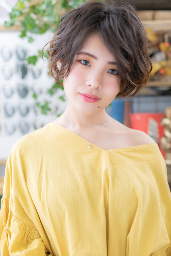 くせ毛風パーマで朝楽の簡単スタイリング。黒髪でクラシカルにしたり、耳かけで大人女子のコーデも完成。トリートメントしたようなカラーリングで髪の毛の悩みも解決!人気のカラーや思い通りの茶色もおすすめ!30代・40代にも◎(メイク担当:北浦和店 今野)