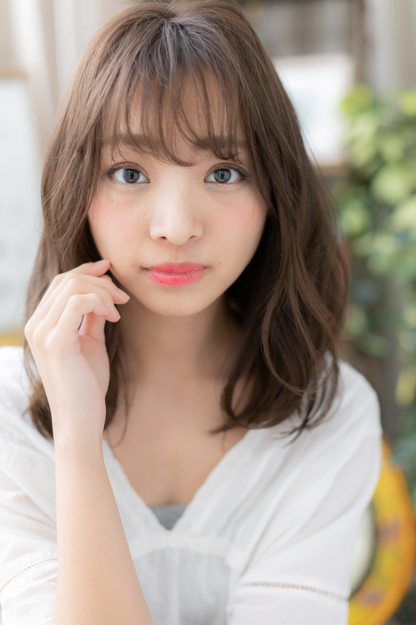 肩のラインのくせ毛風カールが大人かわいいふわミディ。シースルーバングや斜めバングでフェミニンにしたり,厚めバングやオン眉も個性的で大人女子のコーデも完成!ミディアムヘアを際立たせるグラデーションやベージュの暗めの髪の色もおすすめ!(メイク担当:北浦和店 棟方)