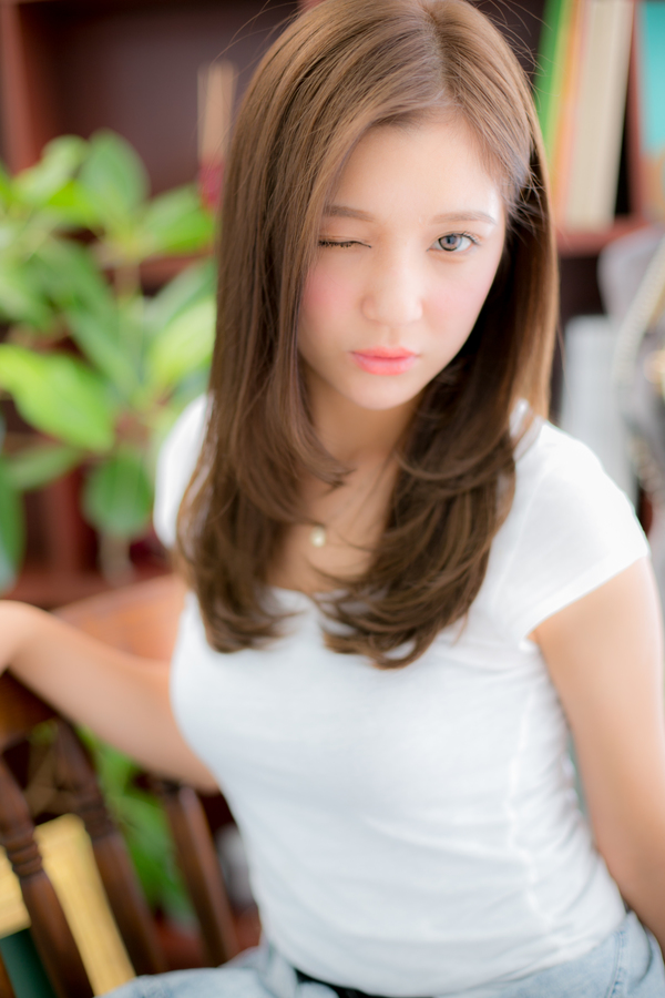 誰からも好感持たれる内巻きストレート。センターパートで清楚な雰囲気,横分けでフェミニンな印象にも。サイドにレイヤーも入っているので動きもでます。