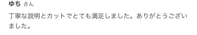 この度は初めてのご来店ありがとうございました。また、嬉しい口コミを頂き、重ねて御礼申し上げます。