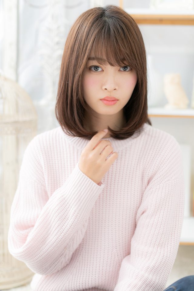 しっとりまとめたローレイヤーのワンカールミディ。前下がりで小顔。長めの斜めバングや厚めバング、シースルーバングで目元を印象付けた髪型も◎耳かけやくせ毛風ふわミディも大人かわいい。(メイク担当:川口店成田