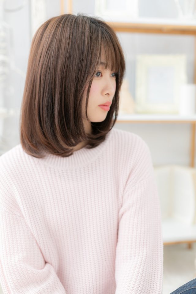 大人可愛いくすみカラー斜めバングワンカール