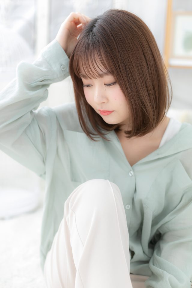 シースルー前髪ツヤ感ココアブラウン小顔ロブ