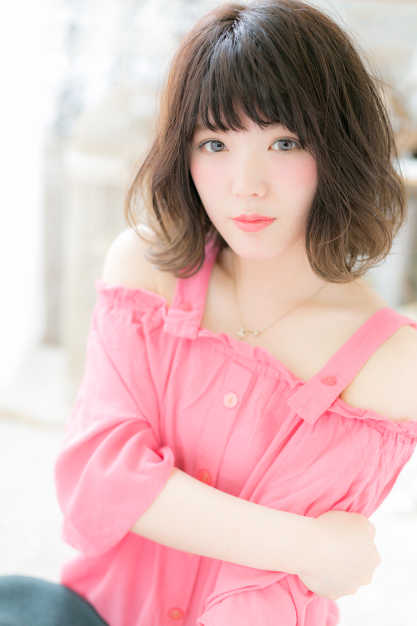 Aラインシルエットがガーリーなふわミディnのヘアスタイル。斜めバングや厚めバングで目力UPしたり,オン眉で個性的にしても大人かわいい。スッキリ耳かけや小顔見せ前下がりもGOOD。黒髪もクラシカル。(メイク担当:COVERHAIRGROUP成田)