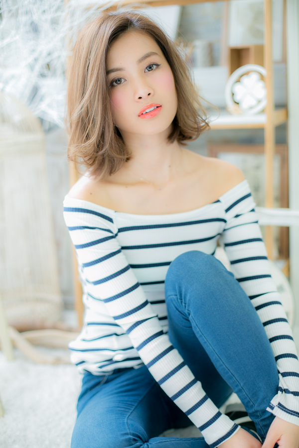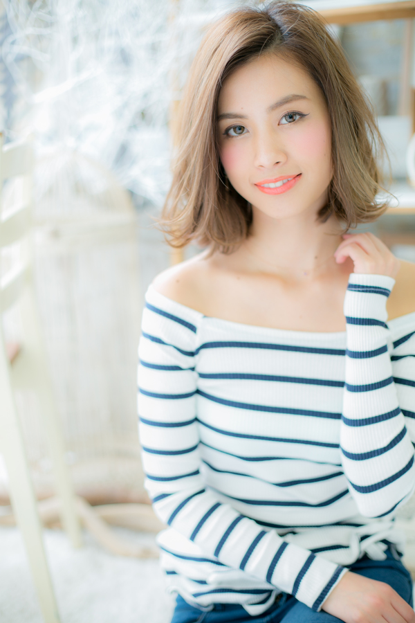 スタイリングが苦手な方でモセットできるように、ベースにパーマをかけているので、朝はワックスのみでOKの簡単スタイリング。頬にかかるサイドの毛流れでフェイスラインをカモフラージュして小顔に見せます。耳かけもOK。