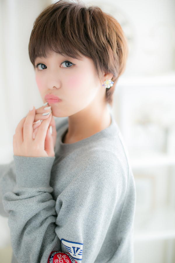 夏に向けてオススメのマッシュショート。ボーイッシュになり過ぎず、健康的でラブなスタイルです☆カラーでツヤと束感を出し、自然な動きが出るようにカットしているので、ノンブローで朝のお手入れも楽チン!ギリギリの前髪で小顔&目力を強調して♪