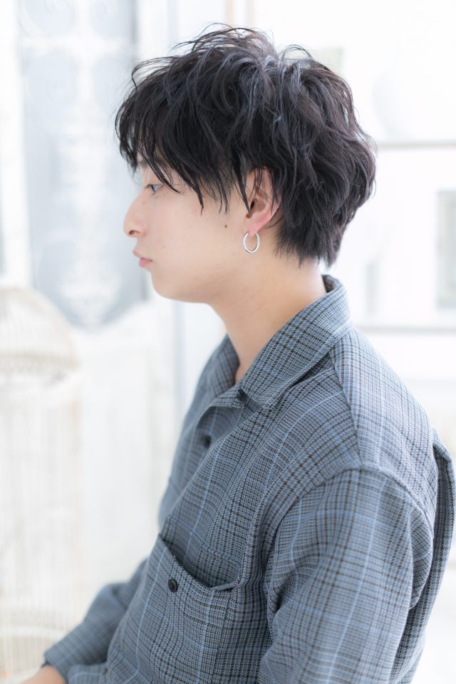 - セミウェットな質感でクールにしたり,マットな質感の無造作ショートやソフトツーブロックもモテ髪型/無造作なかき上げヘアやネ―プレス,クラウドマッシュやネ―プレスなどヘアアレンジも楽しい/ヒアルロン酸カラーは白髪にも対応可/学生/20代/30代/40代