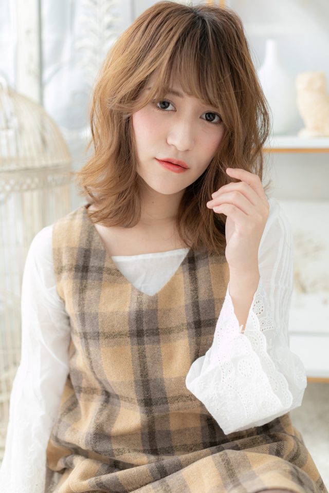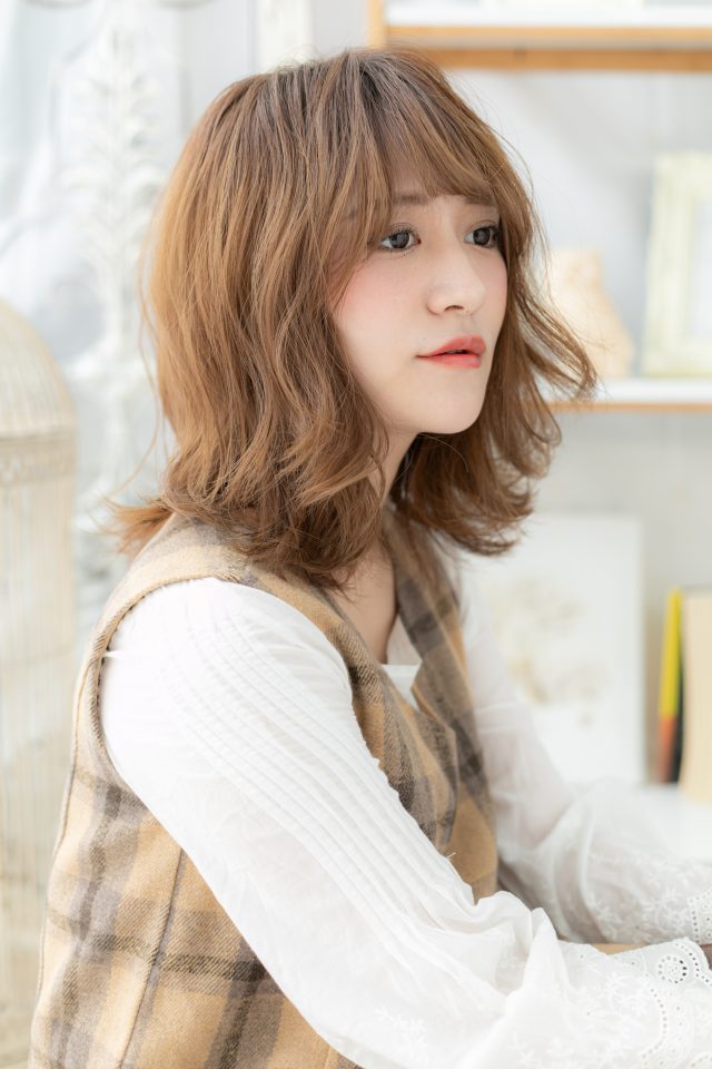斜めバングくせ毛風カール小顔ラブふわミディ
