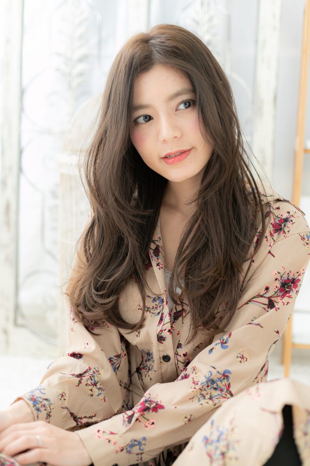 くせ毛風ニュアンスカラー小顔センターパート