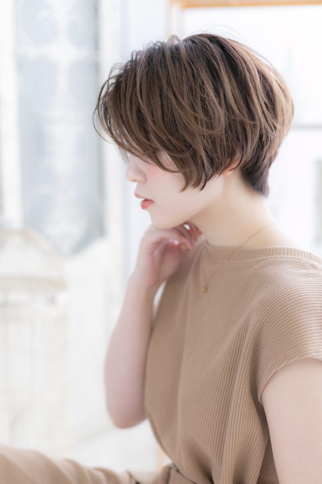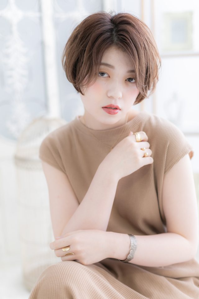 前下がりボブにくせ毛風カールをオン。ニュアンス感ある動きをつけて大人かわいいフェミニンボブに格上げ。ナチュラルボブや大人ボブも大人かわいい。耳かけや前下がりで小顔見せもGOOD。(メイク担当:北浦和店 棟方)