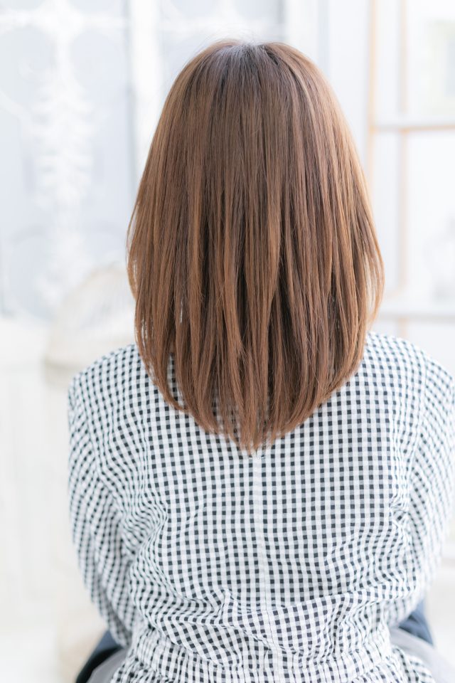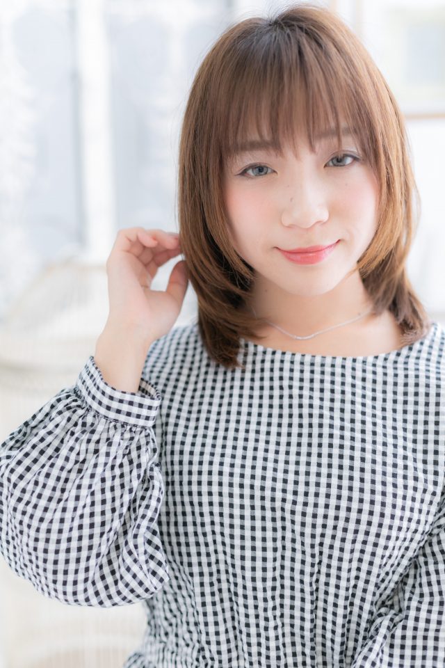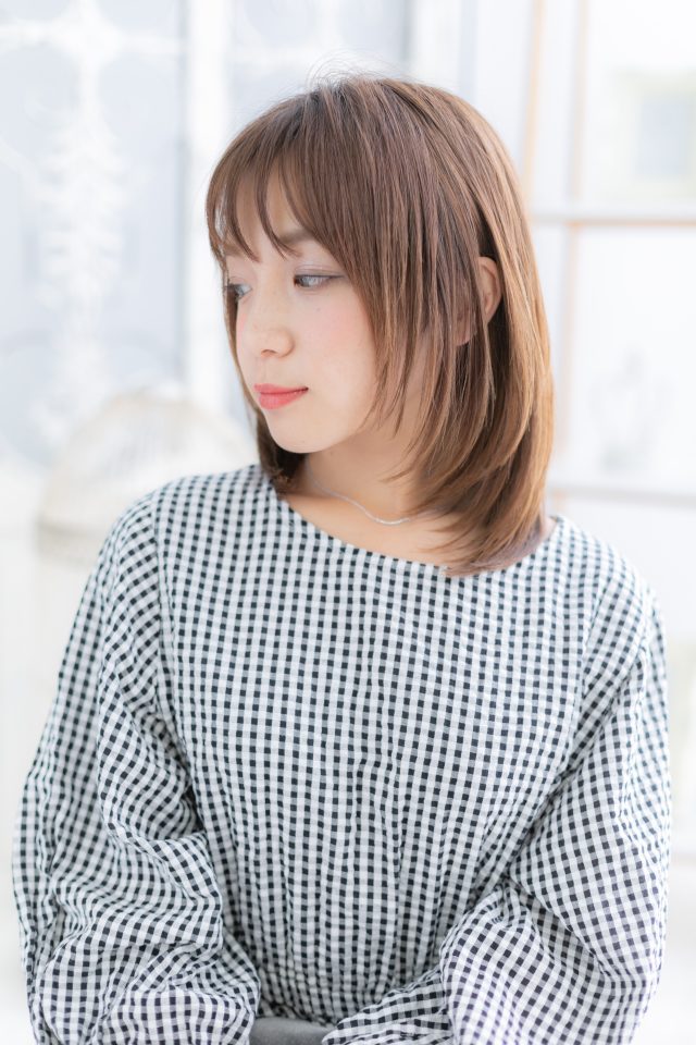シースルーパング&ツヤカラーの王道ストレートで大人女子のコーデを完成!ミディアムヘアを際立てせるグラデーションやベージュもおすすめ!(メイク担当:川口店 成田)