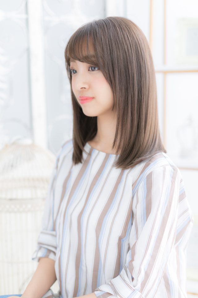 黒髪も◎ナチュラルカラー斜めバングセミディ
